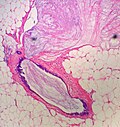 Image:Mucinous Breast Carcinoma (4685664022).jpg | MBC - low mag. | Image:Mucinous Breast Carcinoma (4685664022).jpg | MBC - low mag. (WC/Uthman) | ||