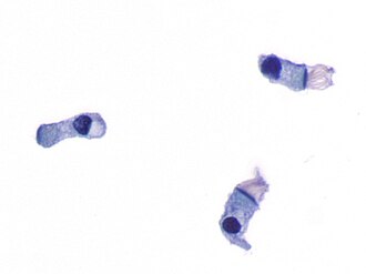 Terminal bar in bronchial cells. Pap stain. (WC)