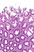 - ↑ Rex, DK.; Ahnen, DJ.; Baron, JA.; Batts, KP.; Burke, CA.; Burt, RW.; Goldblum, JR.; Guillem, JG. et al. (Sep 2012). "Serrated lesions of the colorectum: review and recommendations from an expert panel.". Am J Gastroenterol 107 (9): 1315-29; quiz 1314, 1330. doi:10.1038/ajg.2012.161. PMID 22710576.