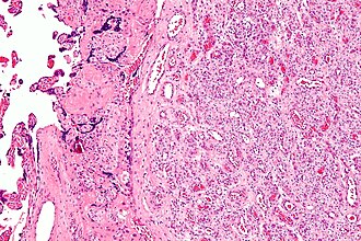 - ↑ 1.0 1.1 1.2 1.3 1.4 Amer HZ, Heller DS (2010). "Chorangioma and related vascular lesions of the placenta--a review". Fetal Pediatr Pathol 29 (4): 199–206. doi:10.3109/15513815.2010.487009. PMID 20594143.