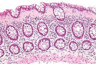 - ↑ Offner, FA.; Jao, RV.; Lewin, KJ.; Havelec, L.; Weinstein, WM. (Apr 1999). "Collagenous colitis: a study of the distribution of morphological abnormalities and their histological detection.". Hum Pathol 30 (4): 451-7. PMID 10208468.