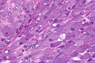 - ↑ 8.0 8.1 Haller F, Bieg M, Will R, Körner C, Weichenhan D, Bott A, Ishaque N, Lutsik P, Moskalev EA, Mueller SK, Bähr M, Woerner A, Kaiser B, Scherl C, Haderlein M, Kleinheinz K, Fietkau R, Iro H, Eils R, Hartmann A, Plass C, Wiemann S, Agaimy A (January 2019). "Enhancer hijacking activates oncogenic transcription factor NR4A3 in acinic cell carcinomas of the salivary glands". Nat Commun 10 (1): 368. doi:10.1038/s41467-018-08069-x. PMC 6341107. PMID 30664630. https://www.ncbi.nlm.nih.gov/pmc/articles/PMC6341107/.