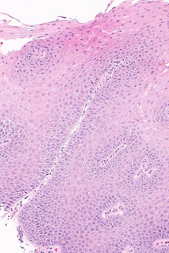 - ↑ Vadva MD, Triadafilopoulos G (July 1993). "Glycogenic acanthosis of the esophagus and gastroesophageal reflux". J. Clin. Gastroenterol. 17 (1): 79–83. PMID 8409304.