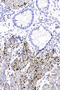- ↑ Koo J, Zhou X, Moschiano E, De Peralta-Venturina M, Mertens RB, Dhall D (December 2013). "The immunohistochemical expression of islet 1 and PAX8 by rectal neuroendocrine tumors should be taken into account in the differential diagnosis of metastatic neuroendocrine tumors of unknown primary origin". Endocr Pathol 24 (4): 184–90. doi:10.1007/s12022-013-9264-9. PMID 24037217.