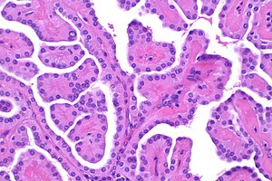 - ↑ 1.0 1.1 1.2 1.3 Al-Obaidy KI, Eble JN, Cheng L, Williamson SR, Sakr WA, Gupta N, Idrees MT, Grignon DJ (August 2019). "Papillary Renal Neoplasm With Reverse Polarity: A Morphologic, Immunohistochemical, and Molecular Study". Am J Surg Pathol 43 (8): 1099–1111. doi:10.1097/PAS.0000000000001288. PMID 31135486.