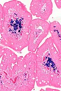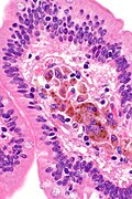 Small bowel pseudomelanosis. H&E stain. | |