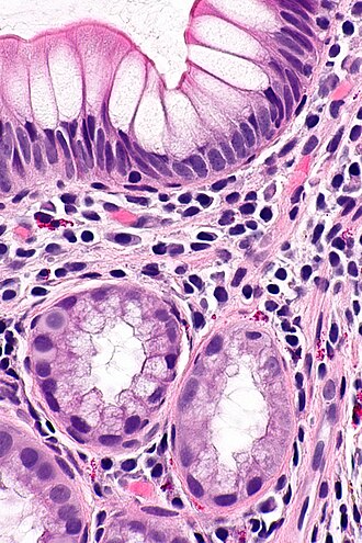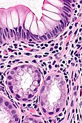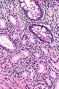 - ↑ Agarwal, S.; Stucchi, AF.; Dendrinos, K.; Cerda, S.; O'Brien, MJ.; Becker, JM.; Heeren, T.; Farraye, FA. (Oct 2013). "Is pyloric gland metaplasia in ileal pouch biopsies a marker for Crohn's disease?". Dig Dis Sci 58 (10): 2918-25. doi:10.1007/s10620-013-2655-4. PMID 23543088.