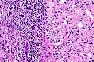 - ↑ 2.0 2.1 de Peralta-Venturina, M.; Moch, H.; Amin, M.; Tamboli, P.; Hailemariam, S.; Mihatsch, M.; Javidan, J.; Stricker, H. et al. (Mar 2001). "Sarcomatoid differentiation in renal cell carcinoma: a study of 101 cases.". Am J Surg Pathol 25 (3): 275-84. PMID 11224597.