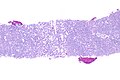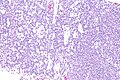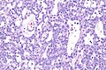 Thymoma (right of image) and remnant of normal thymus (left of image). H&E stain. (WC) | |