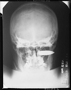 [[Image:260529196 232ebabc57 bBalleIncendiaire.jpg|thumb|200px|X-rays are useful for locating bullets. (WC)]] | |||