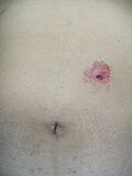Image:Single_gunshot_abdomen.jpg | Entrance wound - abdomen. (WC) | |||
