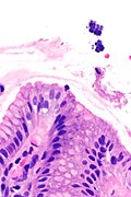 - ↑ 3.0 3.1 Lam-Himlin, D.; Tsiatis, AC.; Montgomery, E.; Pai, RK.; Brown, JA.; Razavi, M.; Lamps, L.; Eshleman, JR. et al. (Nov 2011). "Sarcina organisms in the gastrointestinal tract: a clinicopathologic and molecular study.". Am J Surg Pathol 35 (11): 1700-5. doi:10.1097/PAS.0b013e31822911e6. PMID 21997690.