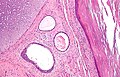 Image:Teratoma 2 intermed mag.jpg| Mature teratoma - intermed. mag. (WC/Nephron) | |||