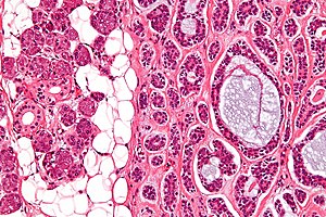 | LM DDx | pleomorphic adenoma, epithelial-myoepithelial carcinoma, intraductal carcinoma |