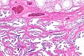 Adenomatous hyperplasia of the rete testis. H&E stain. | |