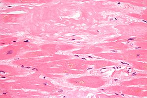 • DDx of pink of H&E is important to remember: amyloid, muscle, collagen, clotted blood.