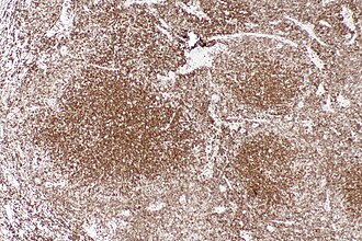 B-cell CLL/lymphoma 2, officially it is abbreviated BCL2,[1] in an oncogene that was described in the context of CLL. It is expressed in other small cell lymphomas.