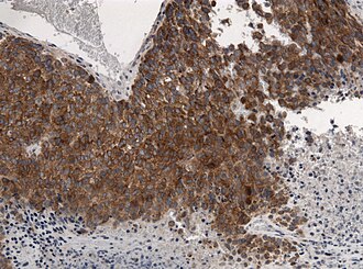 - ↑ 1.0 1.1 Capper, D.; Preusser, M.; Habel, A.; Sahm, F.; Ackermann, U.; Schindler, G.; Pusch, S.; Mechtersheimer, G. et al. (Jul 2011). "Assessment of BRAF V600E mutation status by immunohistochemistry with a mutation-specific monoclonal antibody.". Acta Neuropathol 122 (1): 11-9. doi:10.1007/s00401-011-0841-z. PMID 21638088.