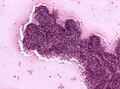 | LM | papillary epithelial structures with bland cytology, mitoses uncommon |