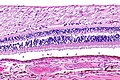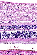 Micrograph showing the optic nerve head and retina. H&E stain. (WC)