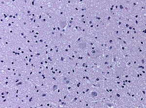 - Prominent cell loss in all cortical layers.[2]