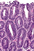 • Cells should become less hyperchromatic as you go toward the lumen.