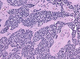 | LM DDx | other small round blue cell tumours (e.g. small cell carcinoma of the lung), large cell lymphoma (e.g. DLBCL), basaloid squamous cell carcinoma |