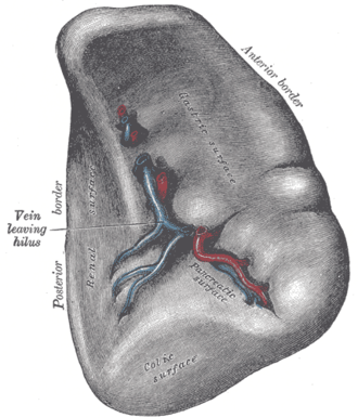 - Capsule of the spleen is white - resembles sugar-coating.[10]