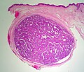 - Dermal thingy; hidradenoma = tumour of sweat duct epithelium.[1]