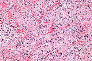 - ↑ 2.0 2.1 Kraft S, Fletcher CD (April 2011). "Atypical intradermal smooth muscle neoplasms: clinicopathologic analysis of 84 cases and a reappraisal of cutaneous "leiomyosarcoma"". Am. J. Surg. Pathol. 35 (4): 599–607. doi:10.1097/PAS.0b013e31820e6093. PMID 21358302.