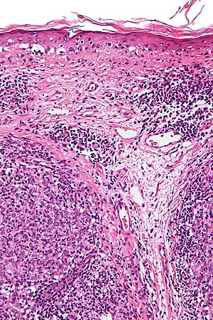 | LM DDx | squamous cell carcinoma of the skin, lymphoma (non-Hodgkin), medullary carcinoma, nasopharyngeal carcinoma (head & neck) |