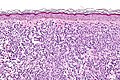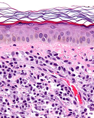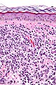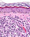 | LM | mast cells (cells in the superficial/mid dermis that are: lymphocyte-like with more cytoplasm that is granular; cells may have spindled or stellate morphology); +/-eosinophils (common) |