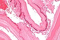 - Amorphous extracellular pink stuff on H&E - see amyloid article.