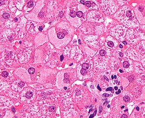 - ↑ Burt, Alastair D.;Portmann, Bernard C.;Ferrell, Linda D. (2006). MacSween's Pathology of the Liver (5th ed.). Churchill Livingstone. pp. 174-5. ISBN 978-0-443-10012-3.