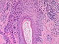 - ↑ Lefkowitch, Jay H. (2006). Anatomic Pathology Board Review (1st ed.). Saunders. pp. 306-7 Q15. ISBN 978-1416025887.