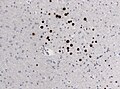 - ↑ Muñoz-Mármol, AM.; Mola, G.; Fernández-Vasalo, A.; Vela, E.; Mate, JL.; Ariza, A. (Nov 2004). "JC virus early protein detection by immunohistochemistry in progressive multifocal leukoencephalopathy: a comparative study with in situ hybridization and polymerase chain reaction.". J Neuropathol Exp Neurol 63 (11): 1124-30. PMID 15581180.
