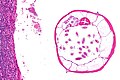 - Large ovoid body with complex structures (cross-section of worm) - size: millimetres.
