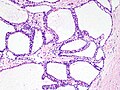 | LM | small cystic spaces lined by cytologically bland cuboidal cells |